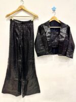 Beautiful Sequence Bloming Georgette Fabric Bustier, Semi Bell Bottom Pant & Short Coat with Full Sleeves with Crape Lining…
