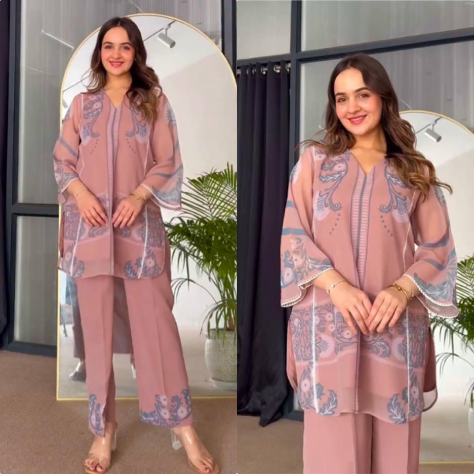 Home ALL PRODUCT Party Wear Look Pur Sifon Georgette Top & plazzo Co-ords Set