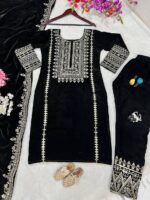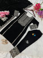 • VELVET EMBROIDERY WORK SUIT WITH POCKET