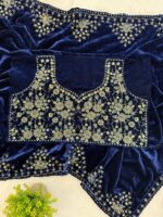VELVET EMBROIDERY WORK SUIT WITH POCKET