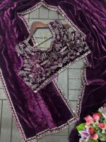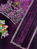 VELVET EMBROIDERY WORK SUIT WITH POCKET